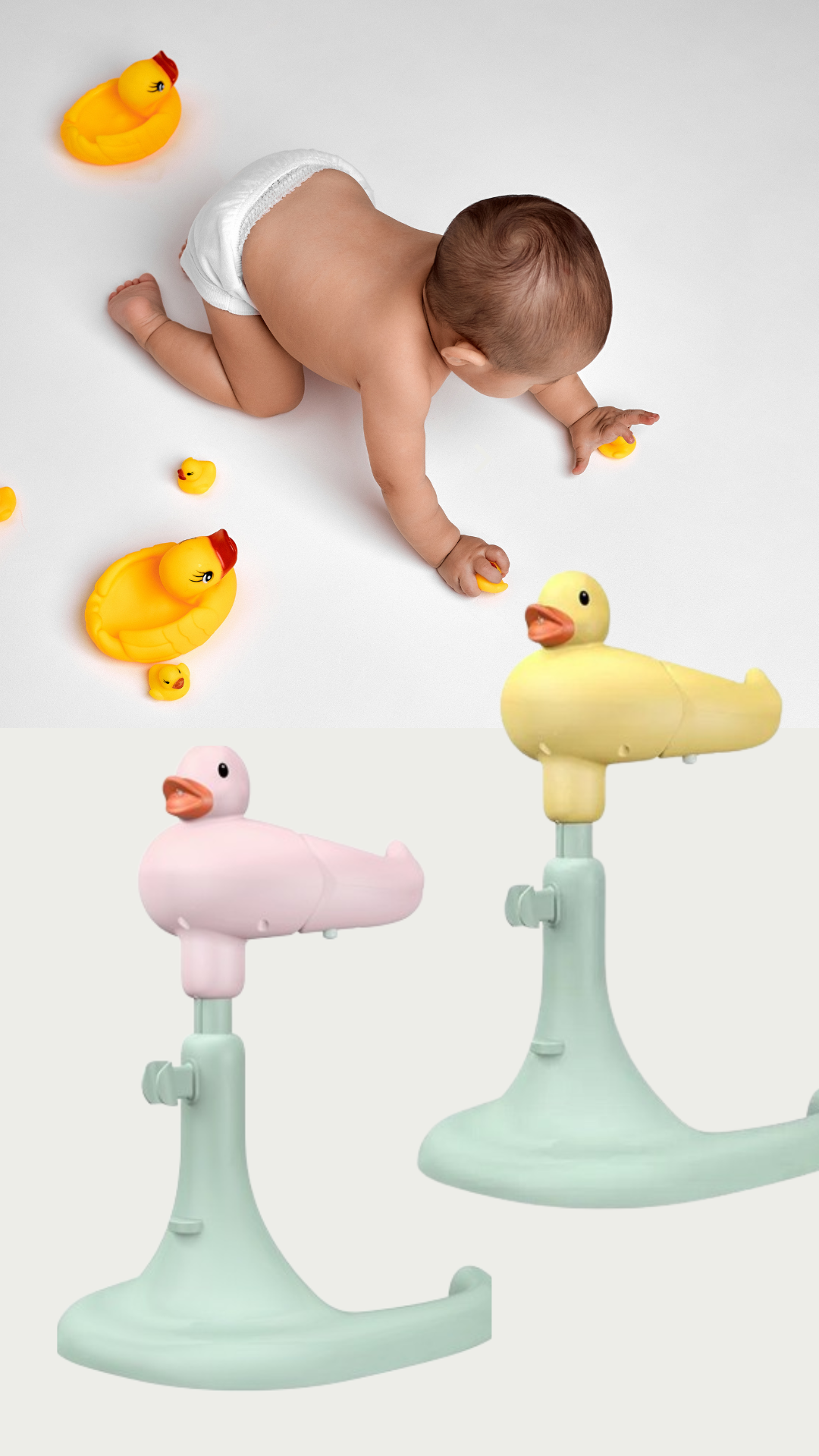 كرسي حمام للبيبيين بشكل بطة يهبل، يخلي وقت الإستحمام آمن ومريح للطفل. التصميم ضريف ويشجع الصغار يحبو يسبحو من غير خوف.